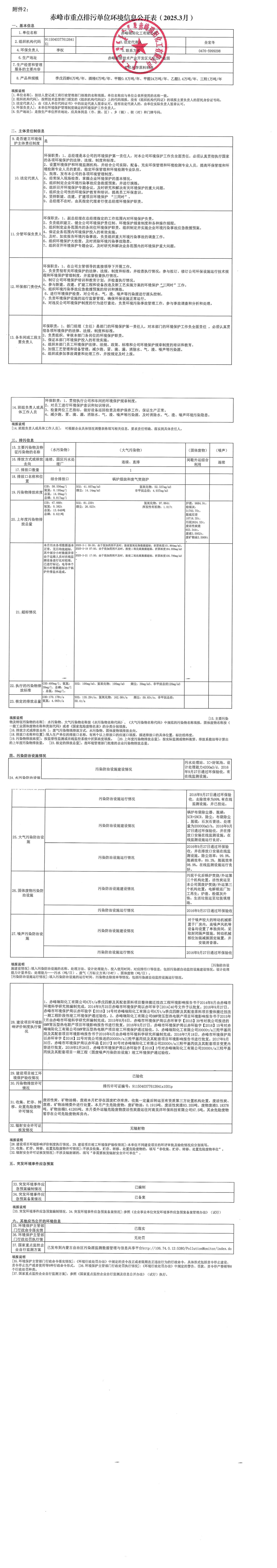 赤峰市重點排污單位環(huán)境信息公開表【2025.03】